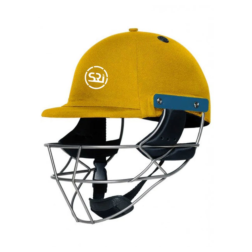 Protective cricket helmet with a high-impact shell, adjustable grill, and ventilation system. Designed for safety, comfort, and superior visibility at the crease.