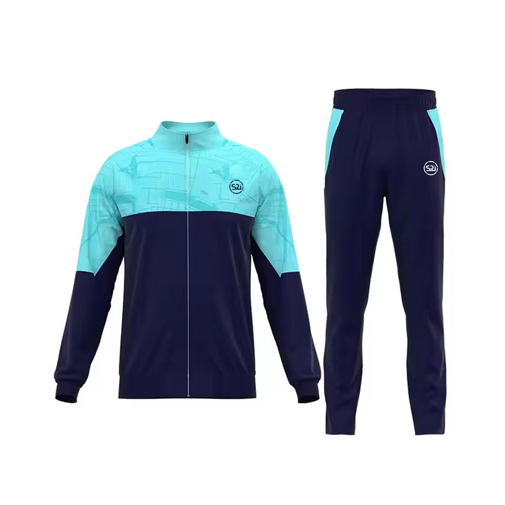 The full-zip jacket features a high collar and zippered pockets, while the matching pants come with an elastic waistband and tapered legs for a secure, athletic fit. Fully customizable with team logos, names, or branding, this tracksuit is a must-have for athletes, teams, or active individuals.